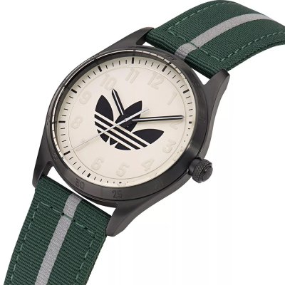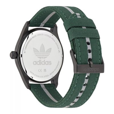 Diese Adidas Uhr hat ein Edelstahl Gehäuse mit einem Durchmesser von 42 mm und ist mit einem Armband aus Textil versehen. In der Uhr arbeitet ein Timex Uhrwerk. Das Glas der Uhr besteht aus Mineral - Glas.