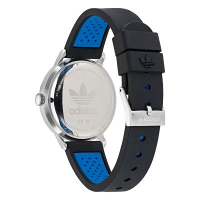 Diese Adidas Uhr hat ein Edelstahl Gehäuse mit einem Durchmesser von 38 mm und ist mit einem Armband aus Kautschuk versehen. In der Uhr arbeitet ein Timex Uhrwerk. Das Glas der Uhr besteht aus Mineral - Glas.