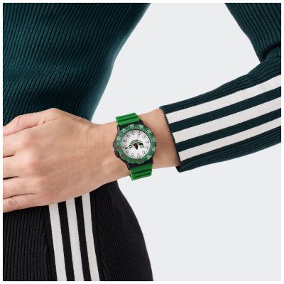Black Resin Case with Green Top-Ring White Dial Green Silicone Strap