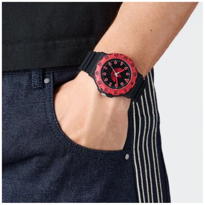 Black Resin Case with Red Top-Ring Black Dial Black Silicone Strap