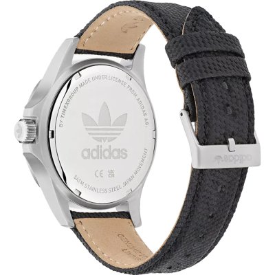 Diese Adidas Uhr hat ein Edelstahl Gehäuse mit einem Durchmesser von 44 mm und ist mit einem Armband aus Textil versehen. In der Uhr arbeitet ein Timex Uhrwerk. Das Glas der Uhr besteht aus Mineral - Glas.