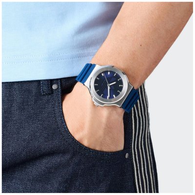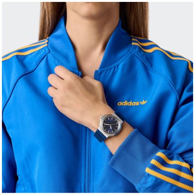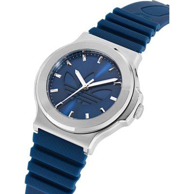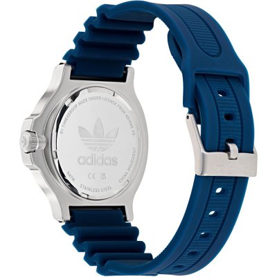 Diese Adidas Uhr hat ein Edelstahl Gehäuse mit einem Durchmesser von 41 mm und ist mit einem Armband aus Kautschuk versehen. In der Uhr arbeitet ein Timex Uhrwerk. Das Glas der Uhr besteht aus Mineral - Glas.