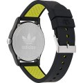 Diese Adidas Uhr hat ein Kunstharz Gehäuse mit einem Durchmesser von 38 mm und ist mit einem Armband aus Kautschuk versehen. In der Uhr arbeitet ein Timex Uhrwerk. Das Glas der Uhr besteht aus Acryl - Glas.