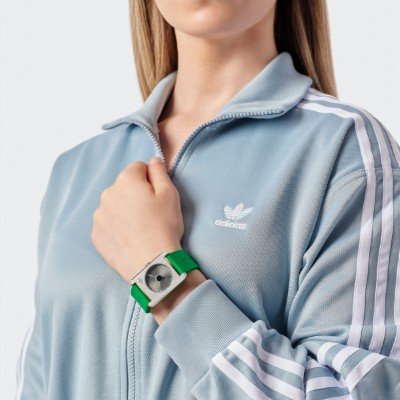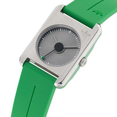 Diese Adidas Uhr hat ein Edelstahl Gehäuse mit einem Durchmesser von 31 mm und ist mit einem Armband aus Kautschuk versehen. In der Uhr arbeitet ein Timex Uhrwerk. Das Glas der Uhr besteht aus Mineral - Glas.