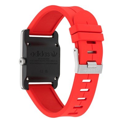 Diese Adidas Uhr hat ein Edelstahl Gehäuse mit einem Durchmesser von 31 mm und ist mit einem Armband aus Kautschuk versehen. In der Uhr arbeitet ein Timex Uhrwerk. Das Glas der Uhr besteht aus Mineral - Glas.