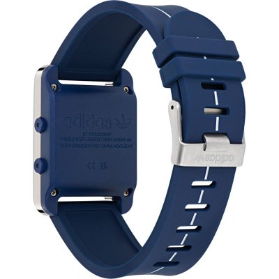Diese Adidas Uhr hat ein Edelstahl Gehäuse mit einem Durchmesser von 31 mm und ist mit einem Armband aus Kautschuk versehen. In der Uhr arbeitet ein Timex Uhrwerk. Das Glas der Uhr besteht aus Mineral - Glas.