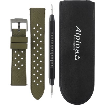 Dieses Alpina Uhrarmband ist aus kautschuk gefertigt und wird mit druckstifte an der Uhr befestigt. Das Band hat eine Breite von 21 mm und wird mit einer dornschließe geschlossen. Das Band hat eine gerade Halterung, was bedeutet, dass dieses Band für alle Alpinauhren mit einer geraden Halterung geeignet ist.