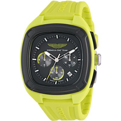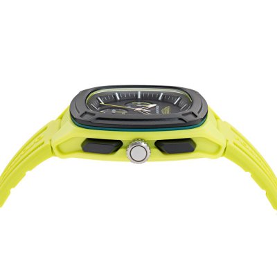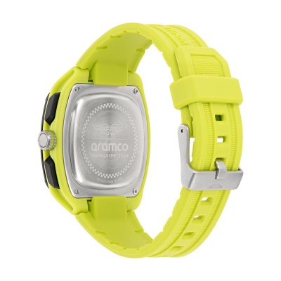 Diese Aston Martin Uhr hat ein Kunstharz Gehäuse mit einem Durchmesser von 44 mm und ist mit einem Armband aus Kautschuk versehen.