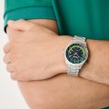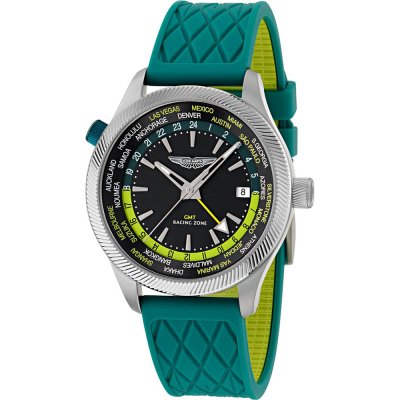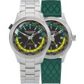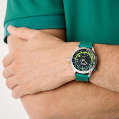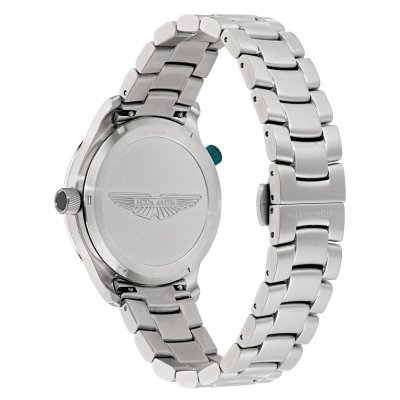 Diese Aston Martin Uhr hat ein Edelstahl Gehäuse mit einem Durchmesser von 41 mm und ist mit einem Armband aus Kautschuk versehen. In der Uhr arbeitet ein Timex Uhrwerk. Das Glas der Uhr besteht aus Mineral - Glas.
