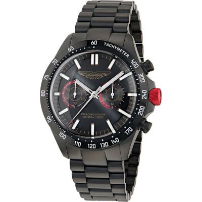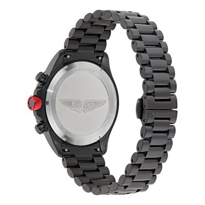 Diese Aston Martin Uhr hat ein Edelstahl Gehäuse mit einem Durchmesser von 44 mm und ist mit einem Armband aus Edelstahl versehen. In der Uhr arbeitet ein Timex Uhrwerk. Das Glas der Uhr besteht aus Mineral - Glas.