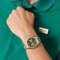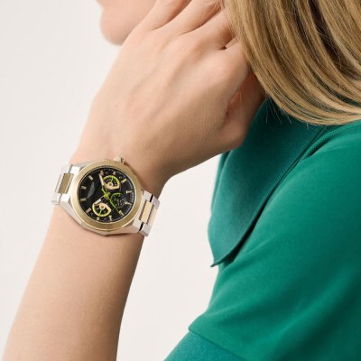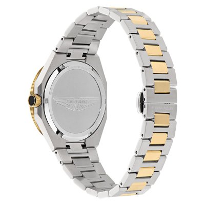 Diese Aston Martin Uhr hat ein Edelstahl Gehäuse mit einem Durchmesser von 42 mm und ist mit einem Armband aus Edelstahl versehen. In der Uhr arbeitet ein Timex Uhrwerk. Das Glas der Uhr besteht aus Mineral - Glas.