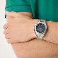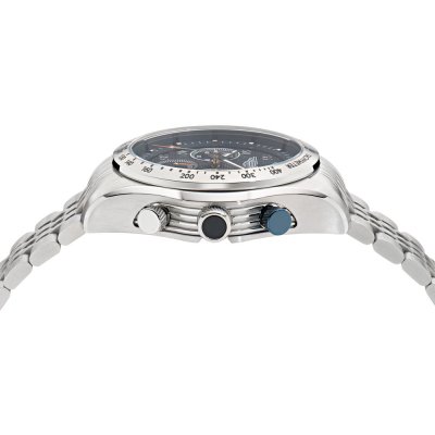 Diese Aston Martin Uhr hat ein Edelstahl Gehäuse mit einem Durchmesser von 42 mm und ist mit einem Armband aus Edelstahl versehen. In der Uhr arbeitet ein Timex Uhrwerk. Das Glas der Uhr besteht aus Mineral - Glas.
