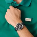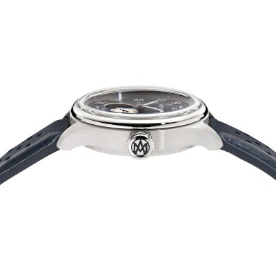 Diese Aston Martin Uhr hat ein Edelstahl Gehäuse mit einem Durchmesser von 41 mm und ist mit einem Armband aus Leder versehen.