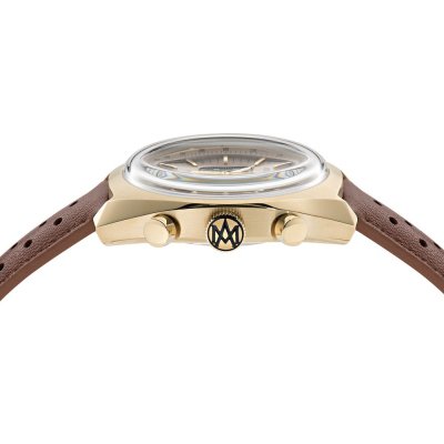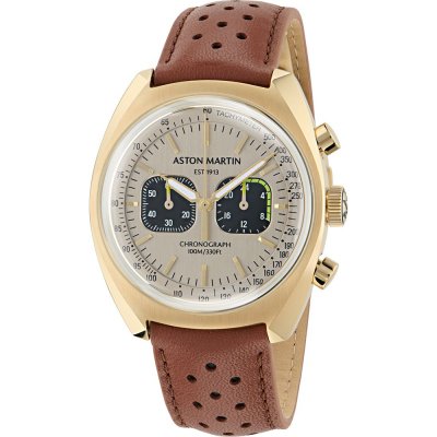 Diese Aston Martin Uhr hat ein Edelstahl Gehäuse mit einem Durchmesser von 43 mm und ist mit einem Armband aus Leder versehen. In der Uhr arbeitet ein Timex Uhrwerk. Das Glas der Uhr besteht aus Mineral - Glas.