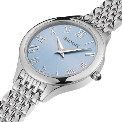 Diese Balmain Uhr hat ein Edelstahl Gehäuse mit einem Durchmesser von 29 mm und ist mit einem Armband aus Edelstahl versehen. In der Uhr arbeitet ein ETA Uhrwerk. Das Glas der Uhr besteht aus Sapphir - Glas.