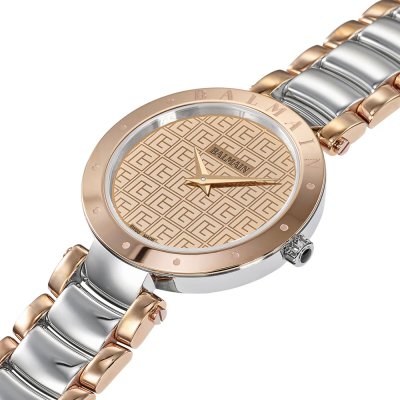Diese Balmain Uhr hat ein Edelstahl Gehäuse mit einem Durchmesser von 33 mm und ist mit einem Armband aus Edelstahl versehen. In der Uhr arbeitet ein ETA Uhrwerk. Das Glas der Uhr besteht aus Sapphir - Glas.