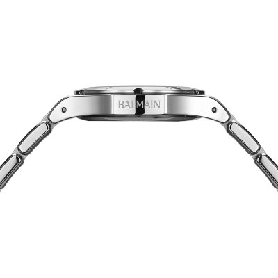 Diese Balmain Uhr hat ein Edelstahl Gehäuse mit einem Durchmesser von 33 mm und ist mit einem Armband aus Edelstahl versehen. In der Uhr arbeitet ein ETA Uhrwerk. Das Glas der Uhr besteht aus Sapphir - Glas.