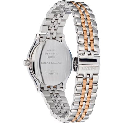 Diese Balmain Uhr hat ein Edelstahl Gehäuse mit einem Durchmesser von 32 mm und ist mit einem Armband aus Edelstahl versehen. In der Uhr arbeitet ein ETA Uhrwerk. Das Glas der Uhr besteht aus Sapphir - Glas.