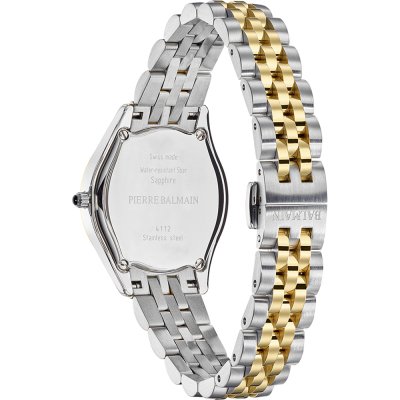 Diese Balmain Uhr hat ein Edelstahl Gehäuse mit einem Durchmesser von 30 mm und ist mit einem Armband aus Edelstahl versehen. In der Uhr arbeitet ein ETA Uhrwerk. Das Glas der Uhr besteht aus Sapphir - Glas.