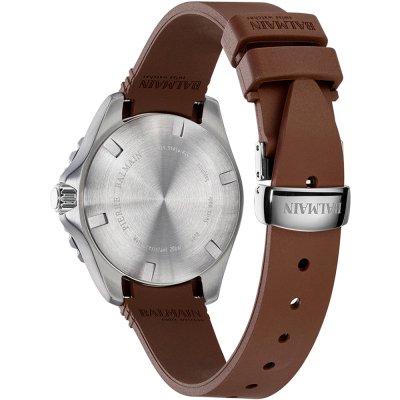 Diese Balmain Uhr hat ein Edelstahl Gehäuse mit einem Durchmesser von 35 mm und ist mit einem Armband aus Kautschuk versehen. In der Uhr arbeitet ein ETA Uhrwerk. Das Glas der Uhr besteht aus Sapphir - Glas.