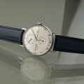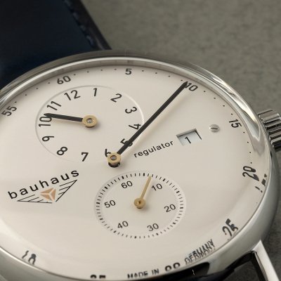 Regulatoruhren gibt es schon seit Hunderten von Jahren, als Uhrmacher noch Hauptuhren zum Stellen ihrer Uhren verwendeten. Bei einer Regulatoruhr befinden sich alle Zeiger in separaten Unterzifferblättern, wobei der Minutenzeiger in der Regel am größten ist und im Mittelpunkt steht. Da diese Zeiger unabhängig voneinander und nicht von einer zentralen Achse aus arbeiten, sind diese Uhren hochpräzise und sehen dazu noch sehr elegant aus. Im modern-minimalistischen Bauhaus-Stil gehalten und von einem zuverlässigen Schweizer Sellita SW266-Uhrwerk angetrieben, bietet diese Uhr sowohl das Aussehen als auch die hochpräzise Funktionalität mit dem Zusatz einer Datumsanzeige. Bei einer Größe von 40 mm und einer Dicke von 12 mm lassen das polierte, kugelförmige Edelstahlgehäuse und das gewölbte Glas dem markanten, dezenten Zifferblatt freien Lauf. Ein nachleuchtendes Logo setzt einen subtilen Akzent. Das bequeme Shell Cordovan Lederarmband aus hochwertigem, pflanzlich gegerbtem Kalbsleder rundet die modernistische Ästhetik dieses außergewöhnlichen Zeitmessers ab.