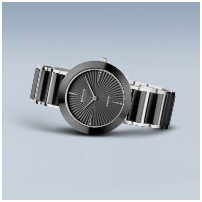 Diese Bering Uhr hat ein Edelstahl Gehäuse mit einem Durchmesser von 35 mm und ist mit einem Armband aus Keramik versehen. In der Uhr arbeitet ein Miyota Uhrwerk. Das Glas der Uhr besteht aus Sapphir - Glas.