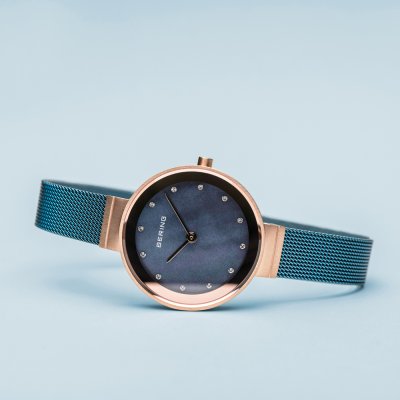 Diese Bering Uhr hat ein Edelstahl Gehäuse mit einem Durchmesser von 28 mm und ist mit einem Armband aus Metall versehen. In der Uhr arbeitet ein Seiko Instruments Inc. Uhrwerk. Das Glas der Uhr besteht aus Sapphir - Glas.