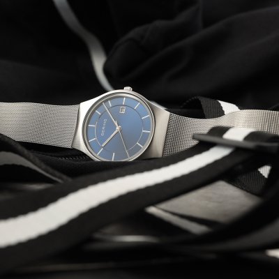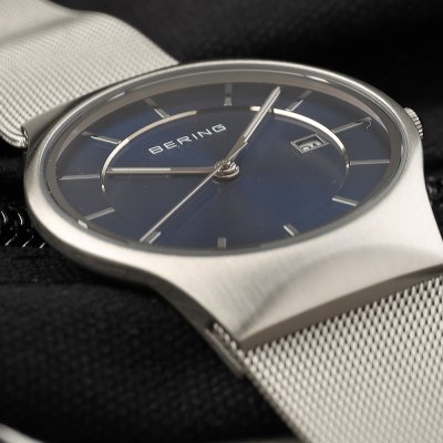 Diese Bering Uhr hat ein Edelstahl Gehäuse mit einem Durchmesser von 38 mm und ist mit einem Armband aus Edelstahl versehen. In der Uhr arbeitet ein Miyota Uhrwerk. Das Glas der Uhr besteht aus Sapphir - Glas.