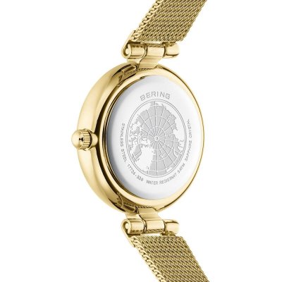 Diese Bering Uhr hat ein Edelstahl Gehäuse mit einem Durchmesser von 24 mm und ist mit einem Armband aus Edelstahl versehen. In der Uhr arbeitet ein Miyota Uhrwerk. Das Glas der Uhr besteht aus Sapphir - Glas.