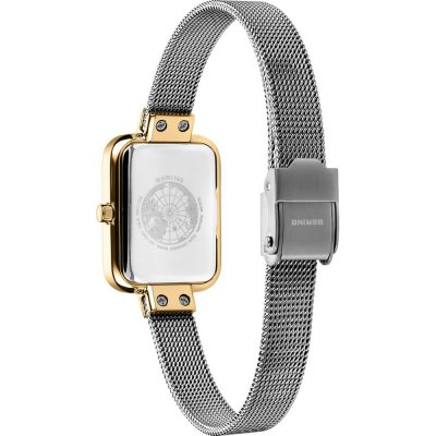 Diese Bering Uhr hat ein Edelstahl Gehäuse mit einem Durchmesser von 20 mm und ist mit einem Armband aus Metall versehen. In der Uhr arbeitet ein Miyota Uhrwerk. Das Glas der Uhr besteht aus Sapphir - Glas.