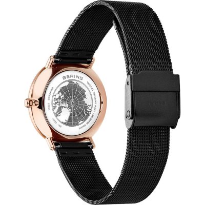 Diese Bering Uhr hat ein Edelstahl Gehäuse mit einem Durchmesser von 29 mm und ist mit einem Armband aus Edelstahl versehen. In der Uhr arbeitet ein Miyota Uhrwerk. Das Glas der Uhr besteht aus Sapphir - Glas.