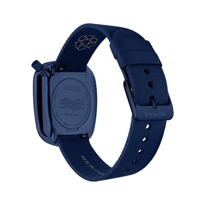 Diese Bering Uhr hat ein Edelstahl Gehäuse mit einem Durchmesser von 36 mm und ist mit einem Armband aus Textil versehen. In der Uhr arbeitet ein Miyota Uhrwerk. Das Glas der Uhr besteht aus Sapphir - Glas.