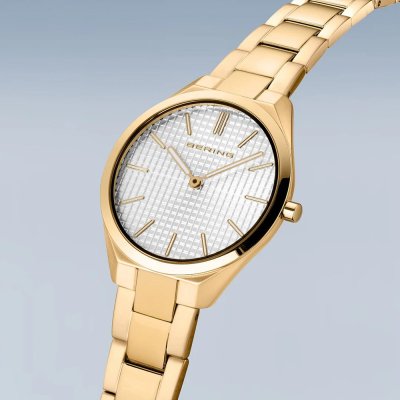 Diese Bering Uhr hat ein Edelstahl Gehäuse mit einem Durchmesser von 31 mm und ist mit einem Armband aus Edelstahl versehen. In der Uhr arbeitet ein Miyota Uhrwerk. Das Glas der Uhr besteht aus Sapphir - Glas.