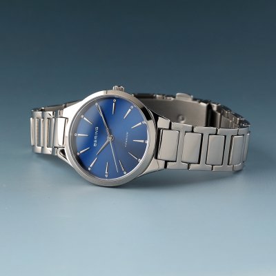 Diese Bering Uhr hat ein Titan Gehäuse mit einem Durchmesser von 30 mm und ist mit einem Armband aus Titan versehen. In der Uhr arbeitet ein Miyota Uhrwerk. Das Glas der Uhr besteht aus Sapphir - Glas.