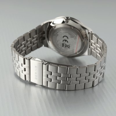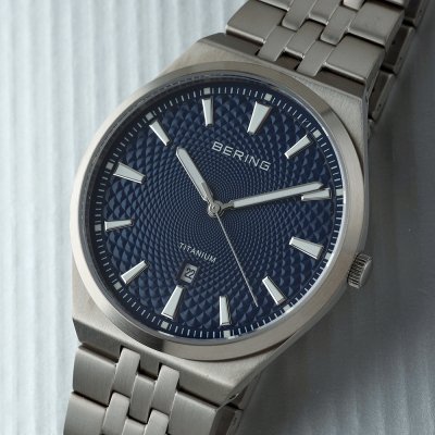 Diese Bering Uhr hat ein Titan Gehäuse mit einem Durchmesser von 41 mm und ist mit einem Armband aus Titan versehen. In der Uhr arbeitet ein Ronda Uhrwerk. Das Glas der Uhr besteht aus Sapphir - Glas.