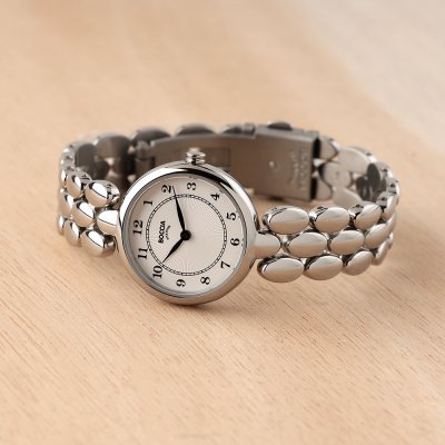 Diese Boccia Uhr hat ein Titan Gehäuse mit einem Durchmesser von 26 mm und ist mit einem Armband aus Titan versehen. In der Uhr arbeitet ein Miyota Uhrwerk. Das Glas der Uhr besteht aus Mineral - Glas.