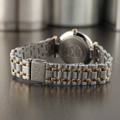 Diese Boccia Uhr hat ein Titan Gehäuse mit einem Durchmesser von 30 mm und ist mit einem Armband aus Titan versehen. In der Uhr arbeitet ein Miyota Uhrwerk. Das Glas der Uhr besteht aus Sapphir - Glas.