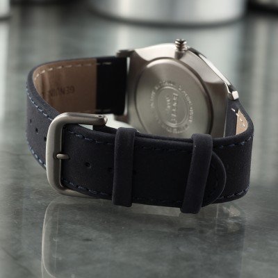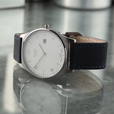 Diese Boccia Uhr hat ein Titan Gehäuse mit einem Durchmesser von 38 mm und ist mit einem Armband aus Leder versehen. In der Uhr arbeitet ein Miyota Uhrwerk. Das Glas der Uhr besteht aus Sapphir - Glas.