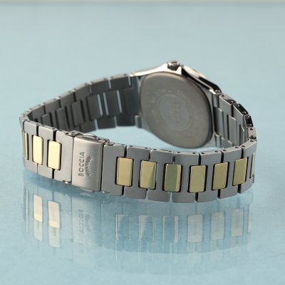 Diese Boccia Uhr hat ein Titan Gehäuse mit einem Durchmesser von 31 mm und ist mit einem Armband aus Titan versehen. In der Uhr arbeitet ein Miyota Uhrwerk. Das Glas der Uhr besteht aus Sapphir - Glas.