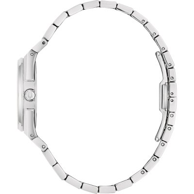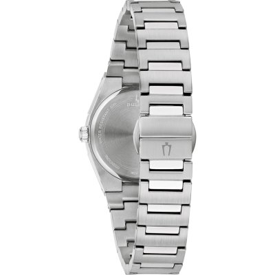 Diese Bulova Uhr hat ein Edelstahl Gehäuse mit einem Durchmesser von 28 mm und ist mit einem Armband aus Edelstahl versehen.