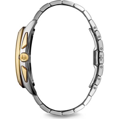 Diese Bulova Uhr hat ein Edelstahl Gehäuse mit einem Durchmesser von 42 mm und ist mit einem Armband aus Edelstahl versehen. In der Uhr arbeitet ein Miyota Uhrwerk. Das Glas der Uhr besteht aus Sapphir - Glas.