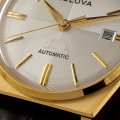 Diese Bulova Uhr hat ein Edelstahl Gehäuse mit einem Durchmesser von 37 mm und ist mit einem Armband aus Leder versehen. In der Uhr arbeitet ein Miyota Uhrwerk. Das Glas der Uhr besteht aus Sapphir - Glas.