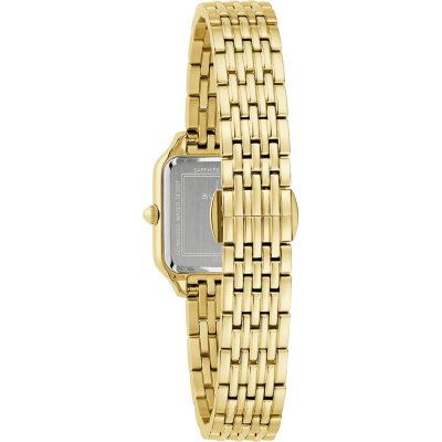 Diese Bulova Uhr hat ein Edelstahl Gehäuse mit einem Durchmesser von 23 mm und ist mit einem Armband aus Edelstahl versehen. In der Uhr arbeitet ein Miyota Uhrwerk. Das Glas der Uhr besteht aus Sapphir - Glas.