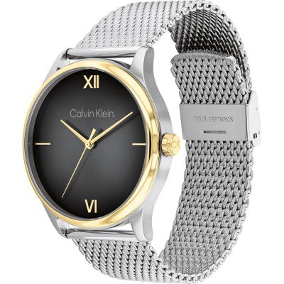 Diese Calvin Klein Uhr hat ein Edelstahl Gehäuse mit einem Durchmesser von 43 mm und ist mit einem Armband aus Edelstahl versehen. In der Uhr arbeitet ein Miyota Uhrwerk. Das Glas der Uhr besteht aus Mineral - Glas.