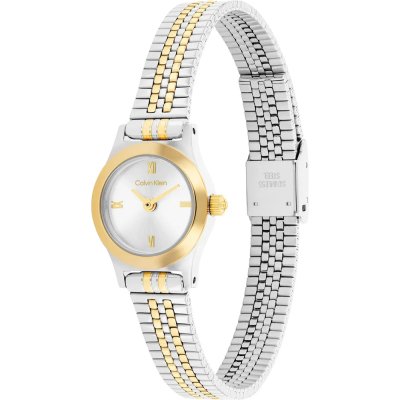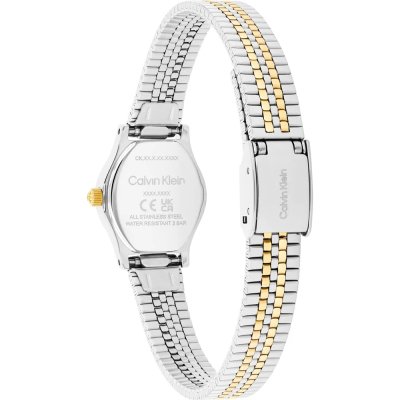 Diese Calvin Klein Uhr hat ein Edelstahl Gehäuse mit einem Durchmesser von 18 mm und ist mit einem Armband aus Edelstahl versehen. In der Uhr arbeitet ein Seiko Instruments Inc. Uhrwerk. Das Glas der Uhr besteht aus Mineral - Glas.