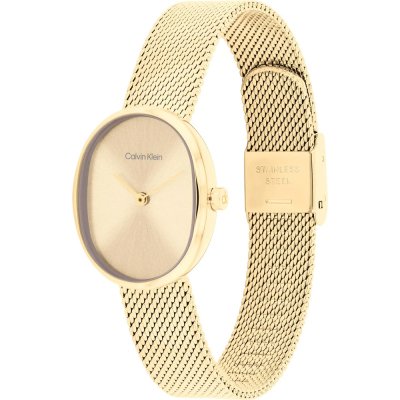 Diese Calvin Klein Uhr hat ein Edelstahl Gehäuse mit einem Durchmesser von 23 mm und ist mit einem Armband aus Edelstahl versehen. In der Uhr arbeitet ein Seiko Uhrwerk. Das Glas der Uhr besteht aus Mineral - Glas.