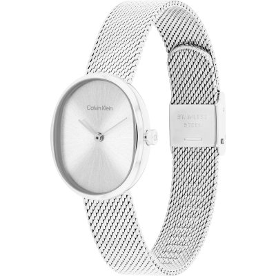 Diese Calvin Klein Uhr hat ein Edelstahl Gehäuse mit einem Durchmesser von 23 mm und ist mit einem Armband aus Edelstahl versehen. In der Uhr arbeitet ein Seiko Uhrwerk. Das Glas der Uhr besteht aus Mineral - Glas.