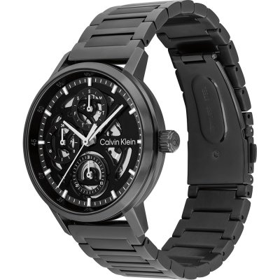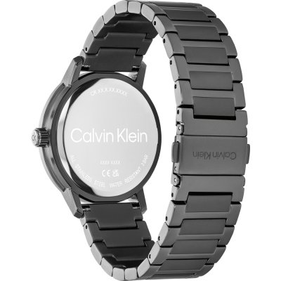 Diese Calvin Klein Uhr hat ein Edelstahl Gehäuse mit einem Durchmesser von 41 mm und ist mit einem Armband aus Edelstahl versehen. In der Uhr arbeitet ein Seiko Instruments Inc. Uhrwerk. Das Glas der Uhr besteht aus Mineral - Glas.