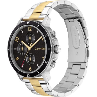 Diese Calvin Klein Uhr hat ein Edelstahl Gehäuse mit einem Durchmesser von 46 mm und ist mit einem Armband aus Edelstahl versehen. In der Uhr arbeitet ein Seiko Instruments Inc. Uhrwerk. Das Glas der Uhr besteht aus Mineral - Glas.