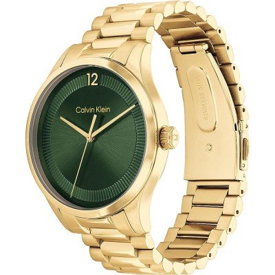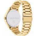 Diese Calvin Klein Uhr hat ein Edelstahl Gehäuse mit einem Durchmesser von 40 mm und ist mit einem Armband aus Metall versehen. In der Uhr arbeitet ein Miyota Uhrwerk. Das Glas der Uhr besteht aus Mineral - Glas.